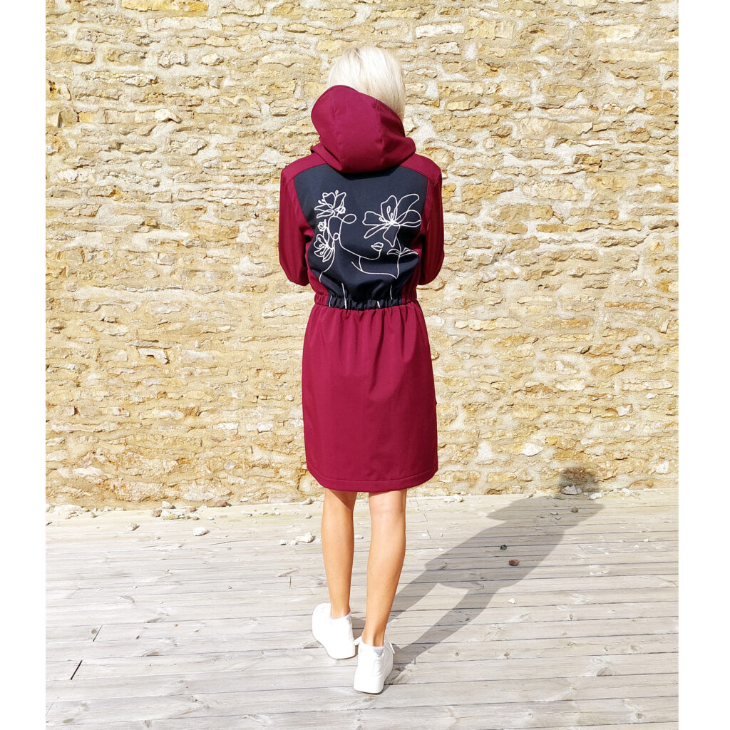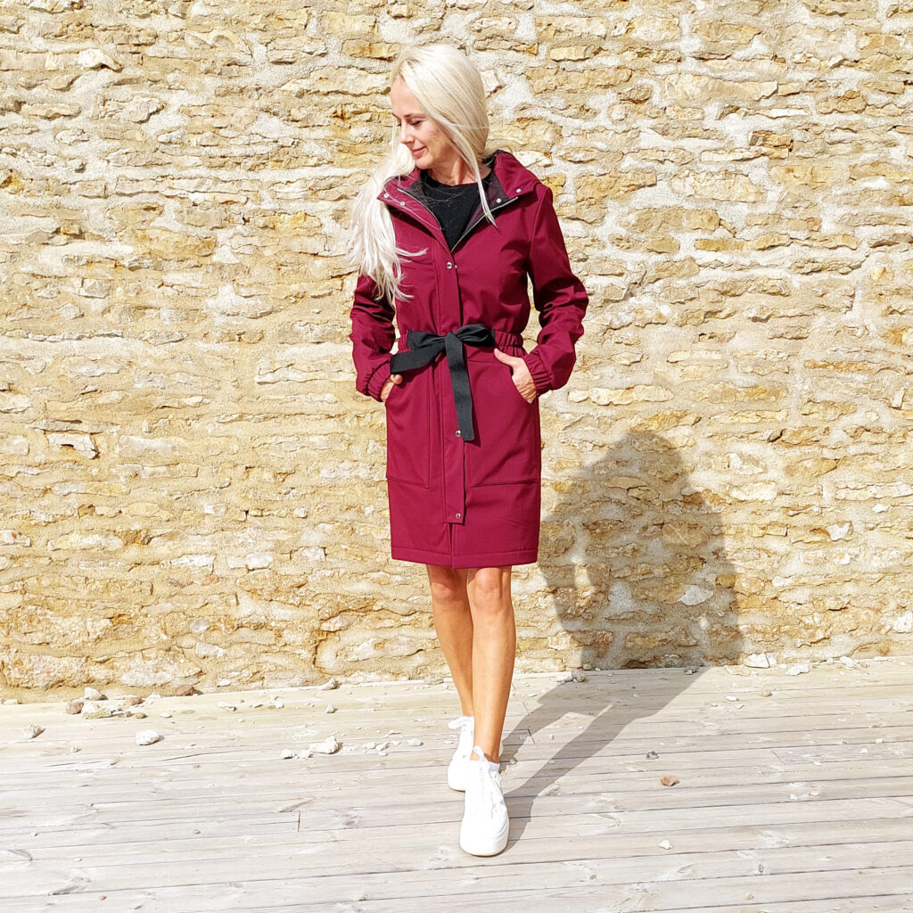 Softshell mantlid on kehasse töödeldud vööjoonel kummiga, vöökohta saab ka reguleerida ees lipsuga. Luku ja liistuga esikinnis ja peale õmmeldud taskud. Mantlil on külge õmmeldud kapuuts, varruka suu on kummimansetiga. Mantlid on seest puhtaks õmmeldud võrkvoordiga.